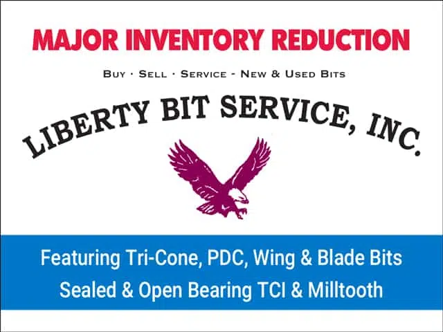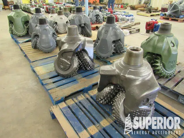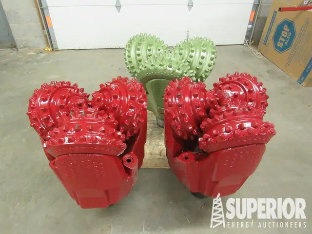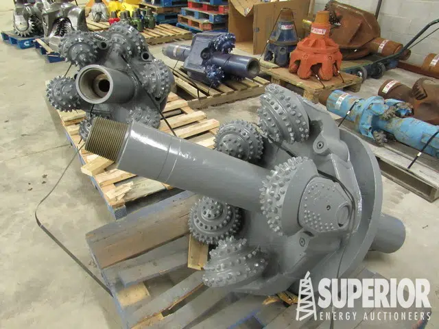 34″ 5-Cone, SB, TCI UNUSED | 32″ 6-Cone, SB, TCI | 30″ 3-Cone, SB, TCI | 24″ 3-Cone SB, TCI UNUSED | 22-3/4″ 6-Cone, SB, TCI | 24″ 3-Cone, SB, TCI | 23-7/8″ 3-Cone, SB, TCI | 18″ 4-Cone, SB, TCI | 17-1/2″ 3-Cone, OB, MT | 15″ 4-Cone, SB, MT | 12-1/4″ 3-Cone, SB, TCI UNUSED | 6-1/8″ 2-Cone, TCI | (3) 24″ Wobble Bits, TCI UNUSED | (1) 16″ Wobble Bit, TCI UNUSED | 24″ 6-Blade PDC Road Boring Reamer | HOC RHO-32 Hole Opener, SB UNUSED