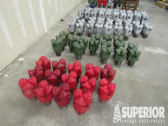 (3) REED HYCALOG 3.75″ R50DAHP SB, TCI UNUSED | (10) 3-3/4″ | (10) 4-1/2″ (2) UNUSED | (10) 4-5/8″ | (10) 4-3/4″ UNUSED | (3) 5-1/8″ UNUSED | (6) 5-1/4″ UNUSED | (1) 5-3/8″ UNUSED | (3) 5-7/8″ (1) UNUSED | (12) 6″ UNUSED | (22) 6-1/8″ (19) UNUSED | (7) 6-1/4″ (5) UNUSED | (5) 6-1/2″ UNUSED | (3) 6-3/4″ | (1) 7-1/2″ | (1) 7-5/8″ UNUSED | (109) 7-7/8″ (16) UNUSED | (1) 8-1/4″ | (6) 8-3/8″ (5) UNUSED | (26) 8-1/2″ (17) UNUSED | (2) 8-5/8″ UNUSED | (45) 8-3/4″ (18) UNUSED | (4) 9-1/2″ | (19) 9-7/8″ (6) UNUSED | (3) 10-5/8″ (1) UNUSED | (5) 11″ | (3) 12″ UNUSED | (23) 12-1/4″ (7) UNUSED | (1) 14-3/4″ | (1) 15″ | (1) 15-3/4″ | (13) 16″ (4) UNUSED | (1) 17″ | (13) 17-1/2″ | (2) 18-1/8″ | (8) 22″ | (1) 24″ | (4) 26″ | (5) 28″