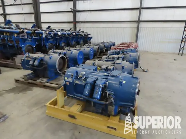 (17) CAT CX48 Trans • NOV Hydra Rig HR-1600 N2 Pump • (2) AIRCO 3-SL N2 Pumps • (3) COTTA GRI600E-64 Gear Reducer Drive Boxes • FUNK Gear Box • (18) G.DENVER Blowers • C.T. BOP Remote Control House • 10′ Office House • (2) HPU’s p/b DETROIT & Elec • Lg Amount of Hyd Pumps, Motor, Cyl’s & Valve Banks (Some UNUSED) • Frac Grease Units • Frac Iron • Lg Number of Eng & Frac Pumps Parts