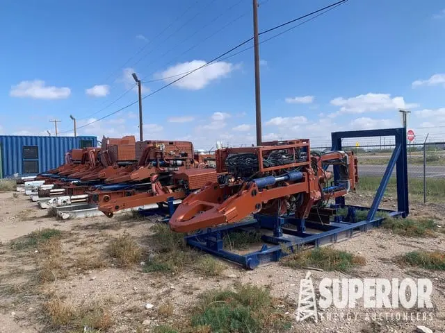 Spare Rig & Pumps Parts: (2) 125’H Telescoping Mast • 19’6″H Sub • Base Beams • F-1300 & F-1000 Modules & Unused Surplus • Rig Spare Parts Surplus • Hyd Cy’s • Right Angle Gear Boxes •Traveling & Rotating • Handling Tools • Water & Fuel Tanks • Cat Walks & Pipe Baskets • Solid Control • Shop Equipment • Traveling & Rotating Equipment • Handling Tools • MITSUBISHI FB70 & JLG Telehandler (Inoperable)
